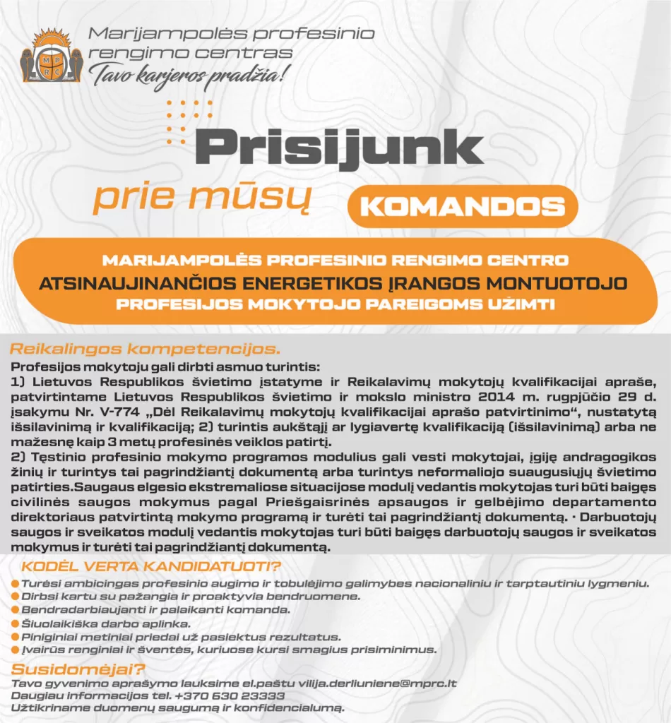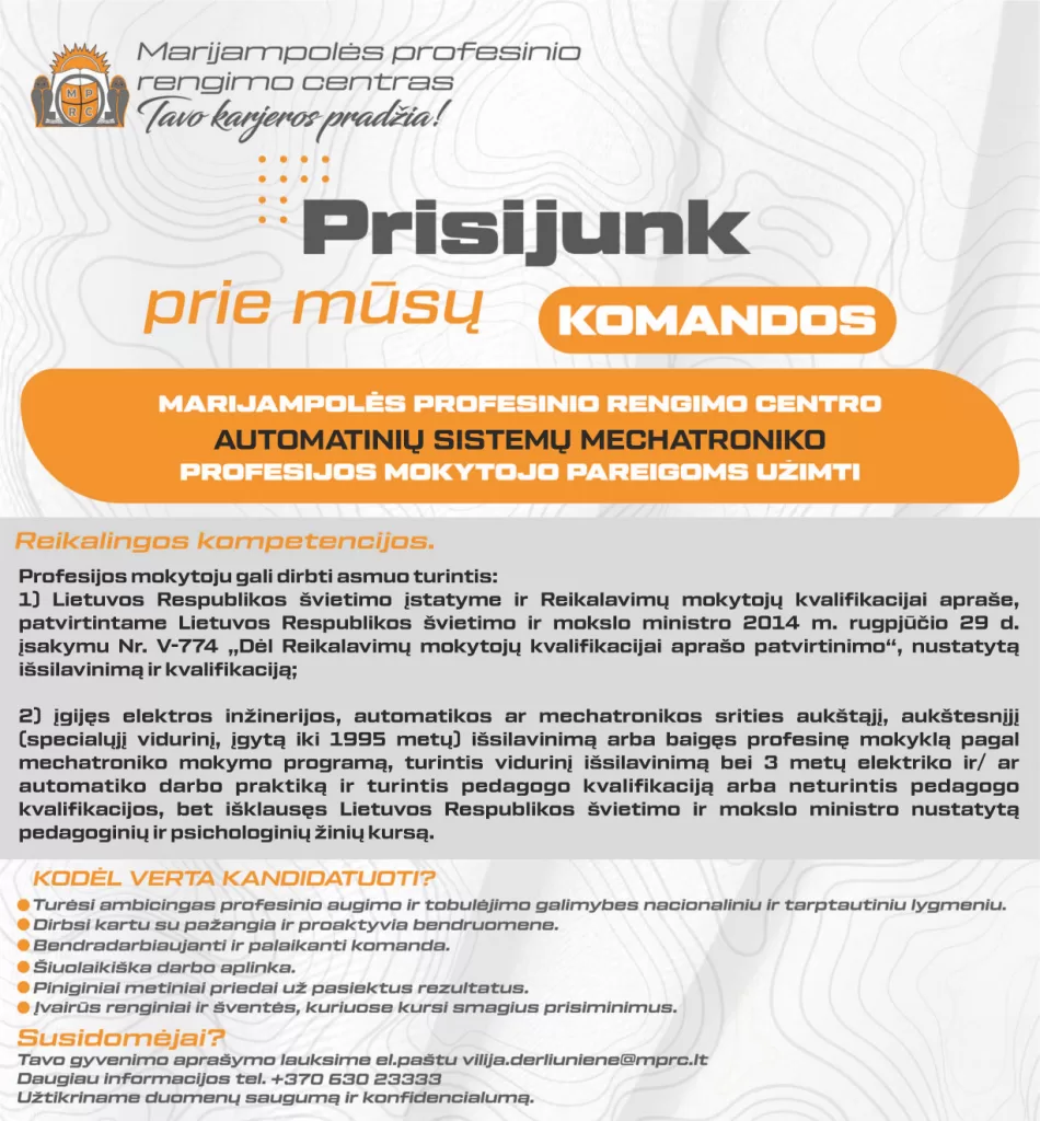 Jei Jums reikalinga papildoma informacija, turite klausimų, maloniai prašome susisiekti su mumis: Tel. +370 630 23 333; el. paštas vilija.derliuniene@mtec.lt