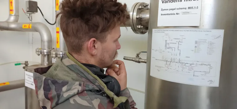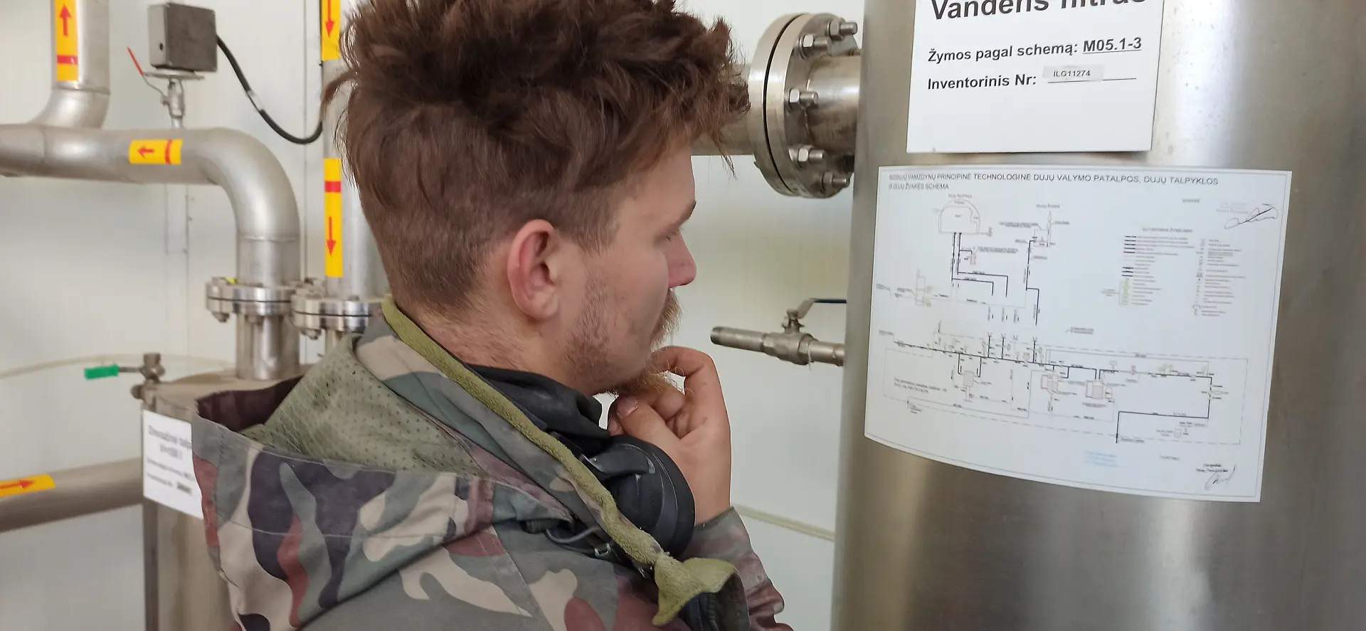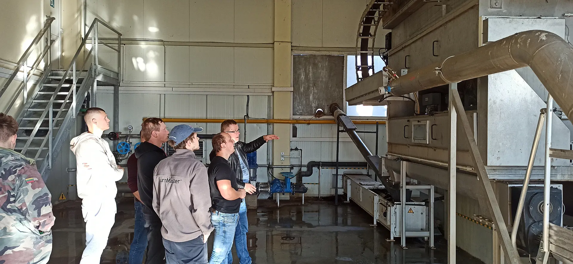Statybos ir mechanikos skyriaus Atsinaujinančios energetikos įrangos montuotojo profesijos AE25 ir AEt25 grupių mokiniai kartu su profesijos mokytoju Sauliumi Orina lankėsi UAB „Sūduvos vandenys“ Marijampolės nuotekų valykloje (Gėlyno g., Marijampolė).