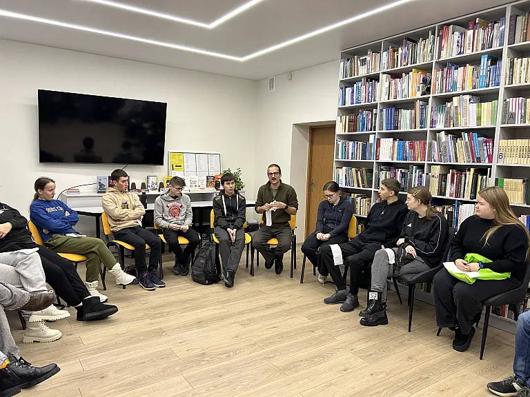 Nuoširdžiai dėkojame Juliui Jatautui už prasmingą, įtraukiančią paskaitą, o mokiniams – už aktyvų dalyvavimą ir brandžias diskusijas.